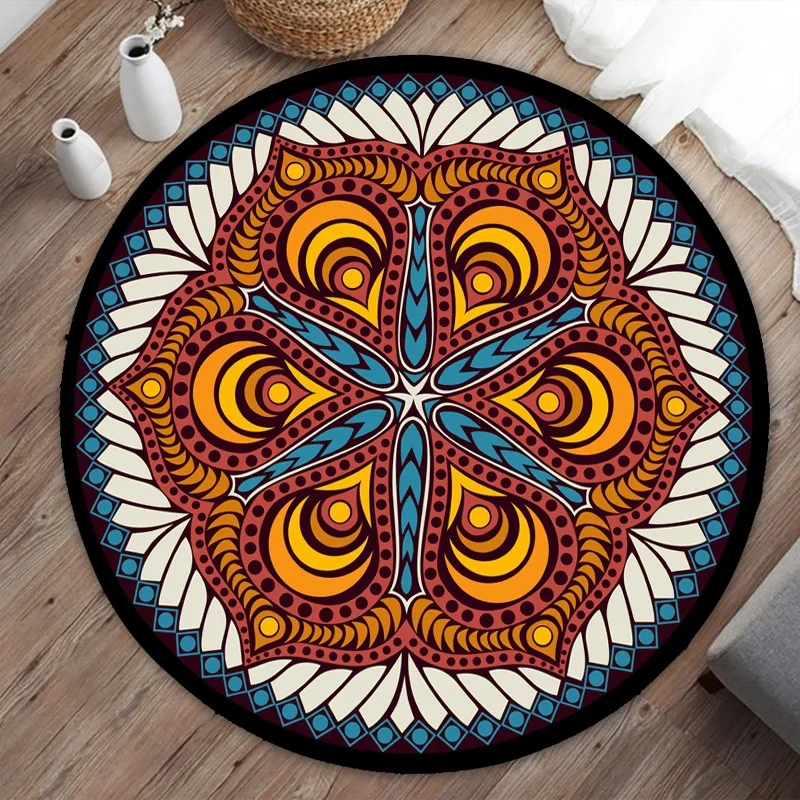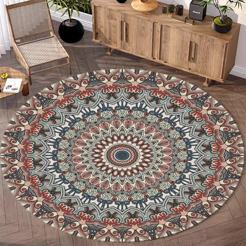 Bohemian Tribal Motif Round Carpet Mat Rug Oriental Geometric Paisley Retro Home Decoration Living Room Study Room Rug