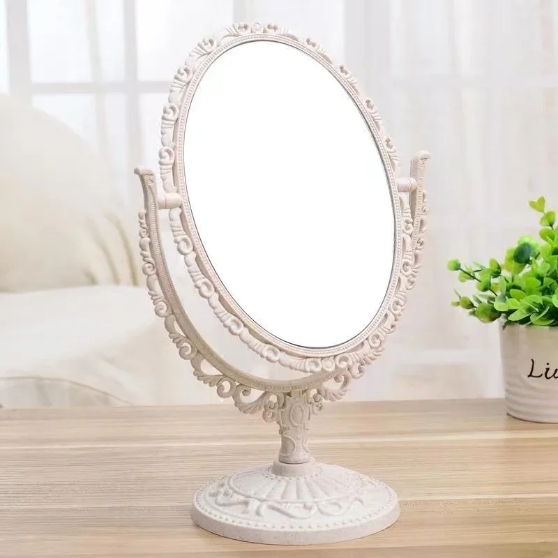 Retro Decorative Mirrors Desktop Makeup Mirror 360 Rotation Double Sided Beauty Dressing Mirror Bedroom Decor Girl Gift